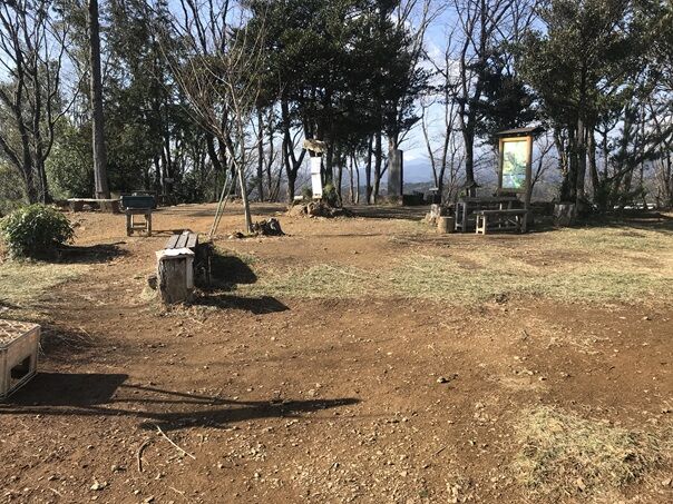 広い山頂でベンチやら案内板やら石碑やらが設置してあった。